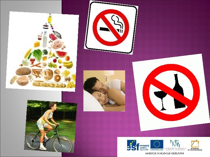 1) Zdravá výživa ( = přiměřená, pestrá a vyvážená) 2)Nekouření 3) Vysoká pohybová aktivita