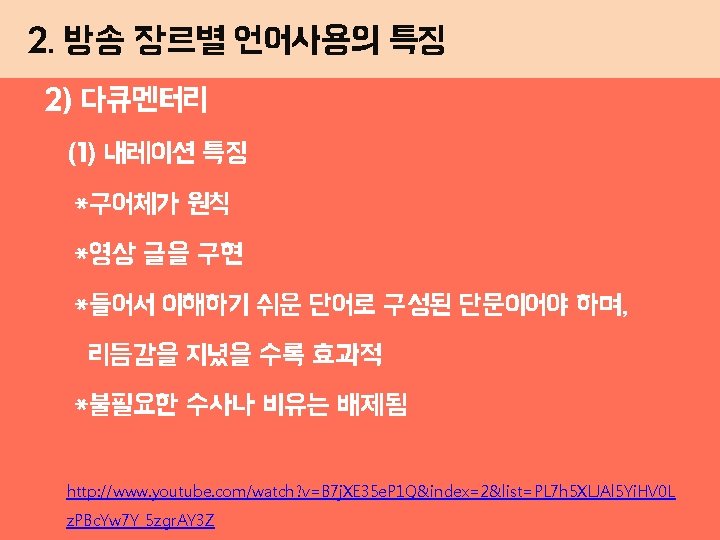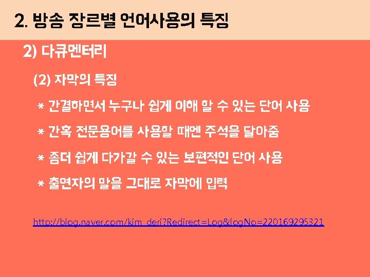 2 1 2 http news naver commainread nhn Slides: 18 Download presentation 2. 방송 장르별 언어사용의 특징 1) 뉴스 (2) 시청자 중심의 경어 http: //news. naver. com/main/read. nhn? mode=LPOD&mid=tvh&oid=0 56&aid=0010093135 박대통령이 한중일 3국 정상회담 개최를 제안했습니다. http: //news. naver. com/main/read. nhn? mode=LPOD&mid=tvh&oid=0 56&aid=0010088779 시비를 거시는 거예요 → 시비를 거는 거예요 5 2. 방송 장르별 언어사용의 특징 1) 뉴스 (3) 품위 있는 말 http: //news. naver. com/main/read. nhn? mode=LPOD&mid=tvh&oid=056&aid= 0010084054 6 ★ 참고문헌 네이버 기사사진 http: //news. naver. com/main/read. nhn? mode=LSD&mid=sec&sid 1=106&oid=019&ai d=0002339905 네이버 블로그 http: //blog. naver. com/zinidami/130144134163 http: //blog. naver. com/kim_deri? Redirect=Log&log. No=220169295321 http: //blog. naver. com/663078? Redirect=Log&log. No=220021642544 http: //blog. naver. com/o 3 o_yjh? Redirect=Log&log. No=110174781924 http: //blog. naver. com/hihellokorea? Redirect=Log&log. No=70181627411 유투브 동영상 http: //www. youtube. com/watch? v=0 g. RM 59 Bjl. Hg 예능프로 방송국 동영상 http: //www. imbc. com/broad/tv/ent/challenge/clip/index. html? list_id=4635298 네이버 지식백과 http: //terms. naver. com/entry. nhn? doc. Id=1078264&cid=40942&category. Id=31752 http: //terms. naver. com/entry. nhn? doc. Id=348931&cid=42617&category. Id=42617 http: //terms. naver. com/entry. nhn? doc. Id=1127549&cid=40942&category. Id=32856 17