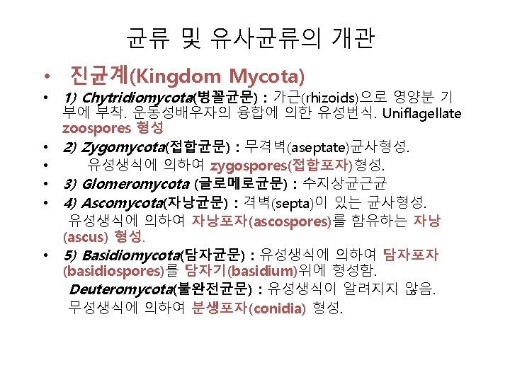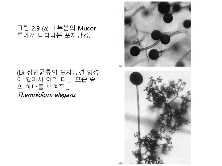 그림 2. 11 (a) 파리곰팡이목(예 Entomophthora spp. ) (b) Pilobolus (c) Piptocephalis