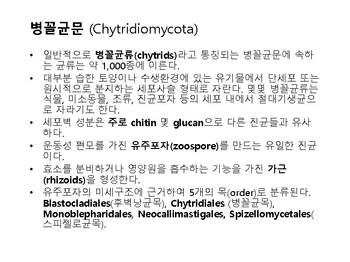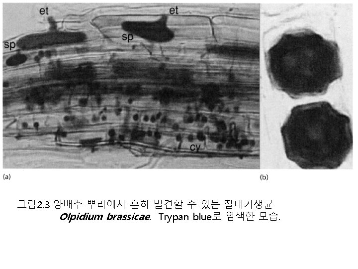 그림 2. 1 병꼴균문(Chytridiomycota) (a) Allomyces의 생활환 (b) 섬유소 분해균 Rhizophlyctis rosea (c) Olpidium brassicae