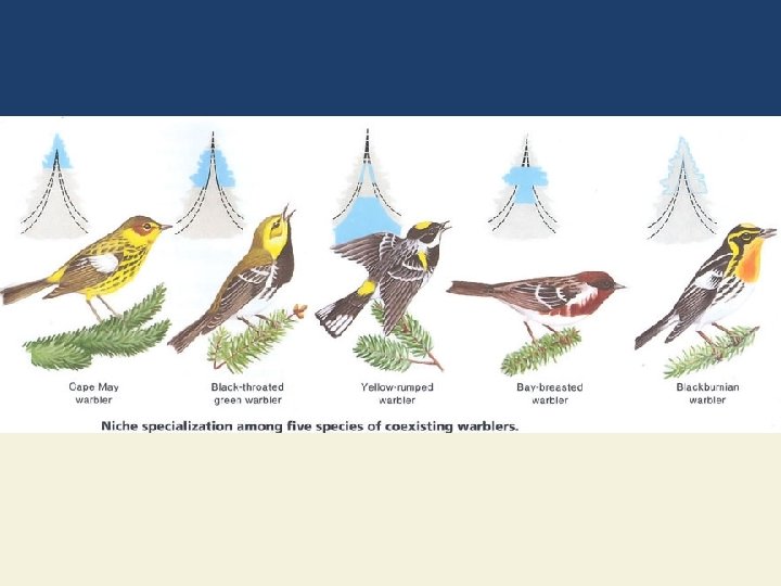 Fundamental vs Realized Niche • No two species can have the same ecological niche in the same place at the same time! • Fundamental Niche: the entire range of conditions in which a species could live • Realized Niche: the actual conditions under which the species lives (usually due to competition)