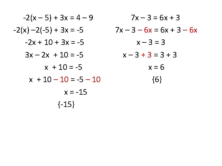 Solving an eqn. using the Add. Prop. Of Equality • Use dist. prop. To get rid of parentheses • Combine like terms on each side separately • Add/Sub. terms to get all variable terms on one side of the eqn. and all constants on the other side