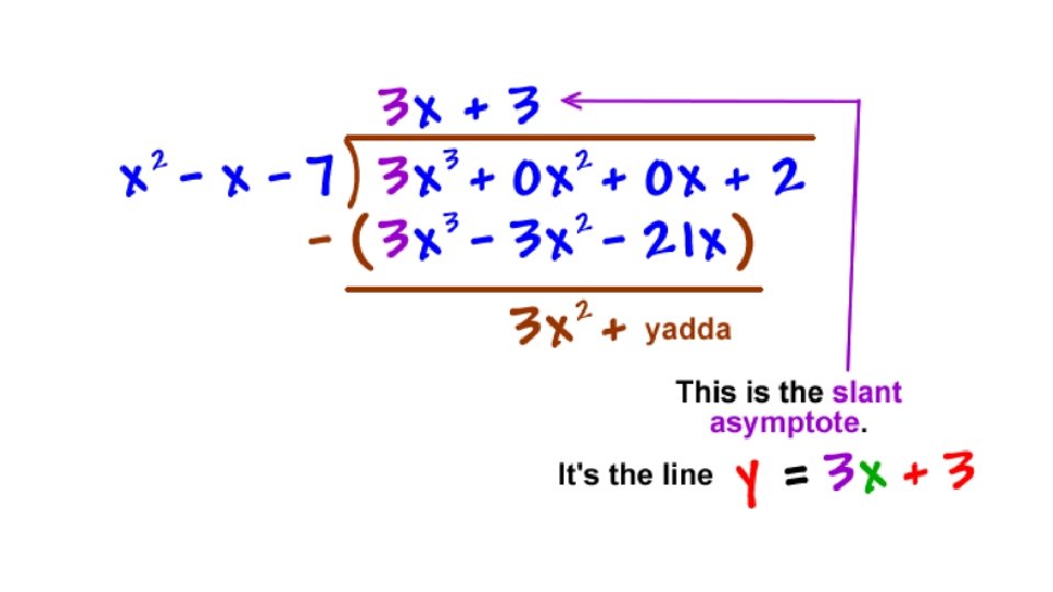 Find the horizontal asymptote for look at start in with some long division. . . and we get to ignore the remainder!