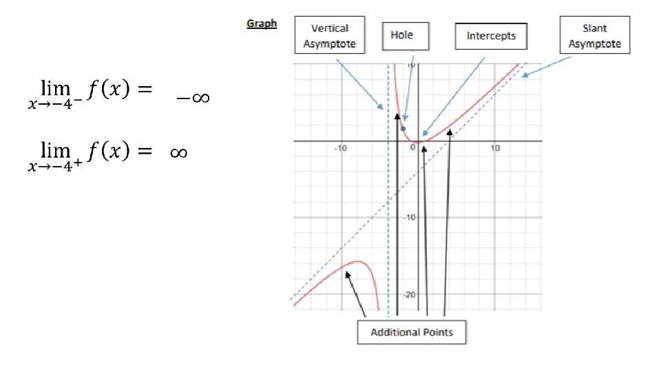 3. Find and sketch any Asymptotes (Horizontal, Vertical, or Slant). 4. Find and plot additional points if needed. Note – there should be at least one point in between and one point beyond each x-intercept and vertical asymptote. Constructing a Sign Chart and finding Origin / Y-axis Symmetry can also be used to aid in this step.
