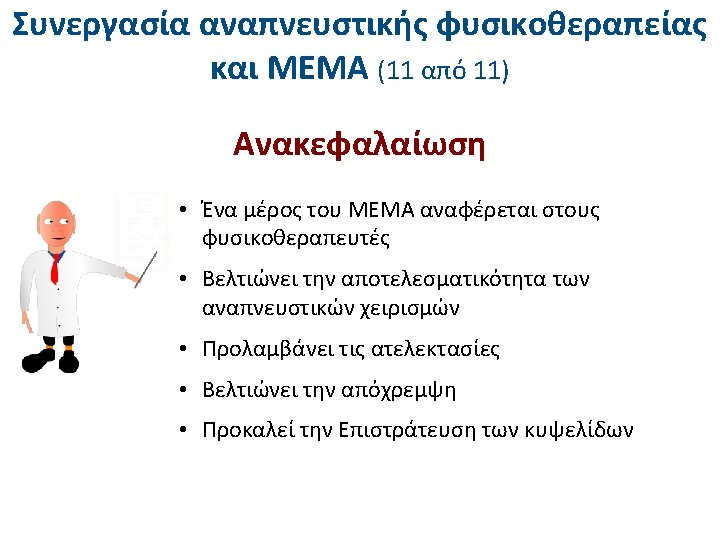 Βιβλιογραφία (3 από 3) • Grasso S, et al. Effects of recruiting maneuvers in patients with acute respiratory distress syndrome ventilated with protective ventilatory strategy. Anesthesiology, 2002; 96: 795 -802. • Guerin C, et al. Facial mask noninvasive mechanical ventilation reduces the incidence of nosocomial pneumonia. Intens Care Med, 1999; 23: 10241032. • Holland AE, et al. Non-invasive ventilation assists chest physiotherapy in adults with acute exacerbations of cystic fibrosis. Thorax, 2003; 58: 880884. • Pryor JA. Physiotherapy for airway clearance in adults. Eur Res J, 1999; 14: 1418 -1424. • Scott et al. The role of time and pressure on alveolar recruitment. Journal of Applied Physiology, 2009; 106: 757 -765.