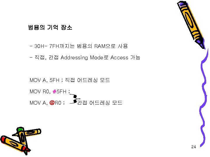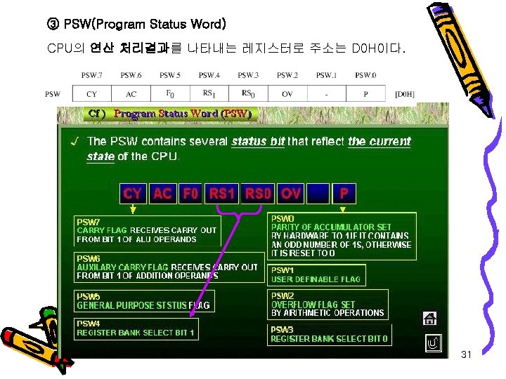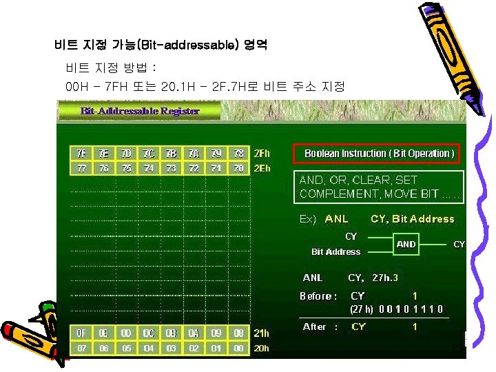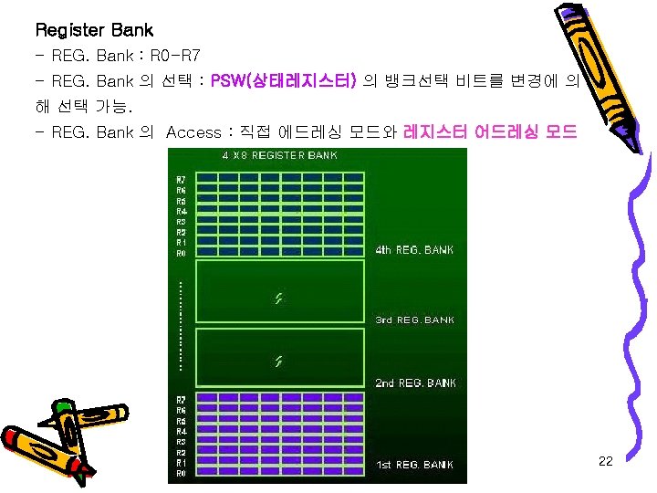 내부 메모리의 하위 128 Byte(00 H~0 FH)의 구조 Register Bank 4개 21