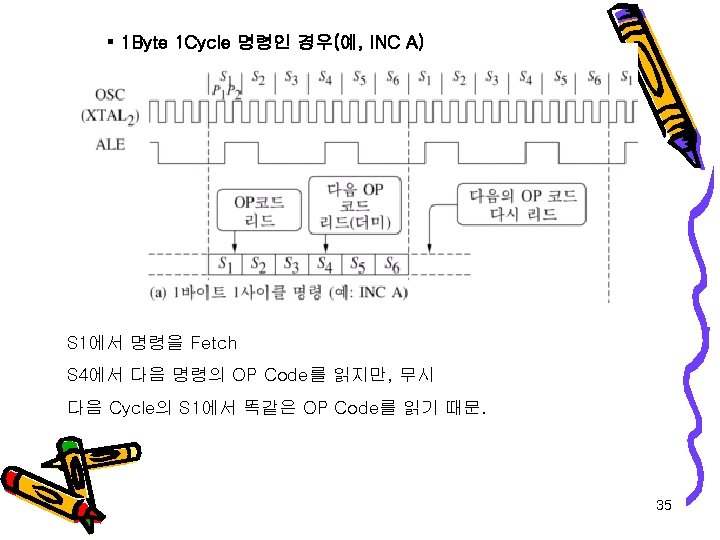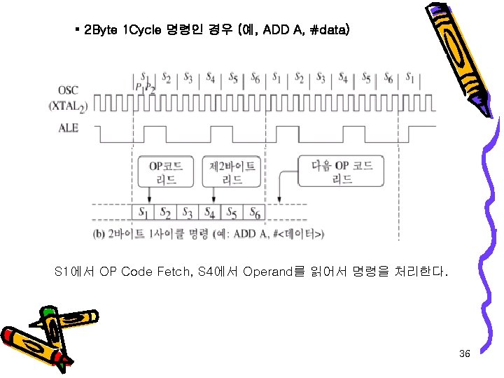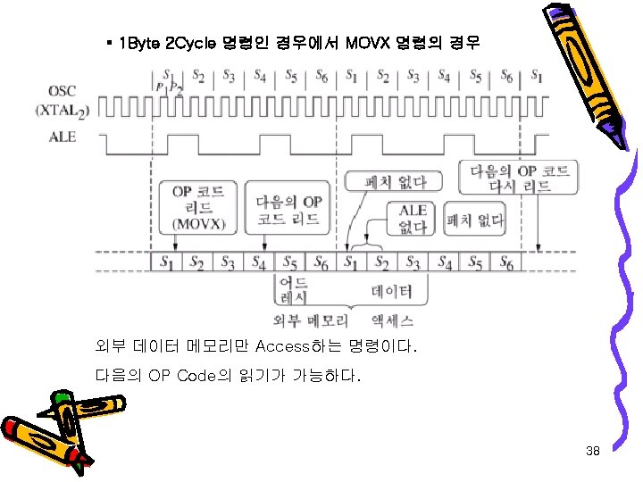 § 1 Byte 2 Cycle 명령인 경우 ( 예, INC DPTR ) S 1에서 OP Code를 Fetch, S 4와 다음 Cycle의 S 1, S 4에서 Dummy Read. 37