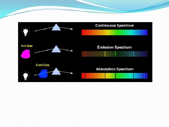 Spektrumların ayrıntılı yapısı 1. Kesintisiz-(sürekli spektrum) tüm dalga boyları görülebilir Isıtılan katı cisimlerin verdiği ışık (siyah cisim ışıması) Beyaz ışık prizmadan geçirildiğinde gözlenir.