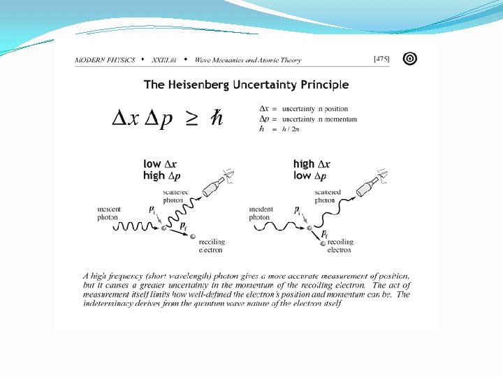 Heisenberg belirsizlik prensibi (1927) � Bir parçacığın momentumu ve konumu aynı anda tam doğrulukla ölçülemez (momentum değişimi = kütle değişimi x hız değişimi). � Bir parçacığın konumu ne denli doğrulukla ölçülürse (yani konumunun belirsizliği ne denli küçük olursa), buna karşılık momentumunun belirsizliği aynı oranda büyük olur. Tersine, momentumdaki belirsizlik küçüldükçe, aynı oranda konumunun belirsizliği büyür. . 34