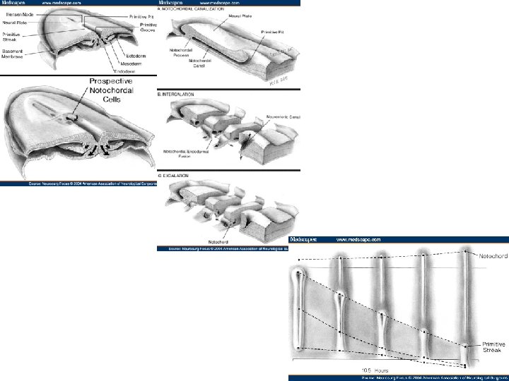 Notochord formation üCellular rod develops by transformation of notochordal process: distinguishable-1718 thday ► Prenotochordal cells invaginate primitive pit ► move cephaloid until they reach prechordal plate ►acquire lumen, notochordal canal