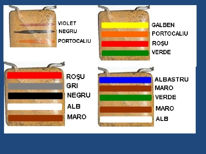 Culori pentru coeficientul de multiplicare: Culori pentru coeficientul de toleranţă: