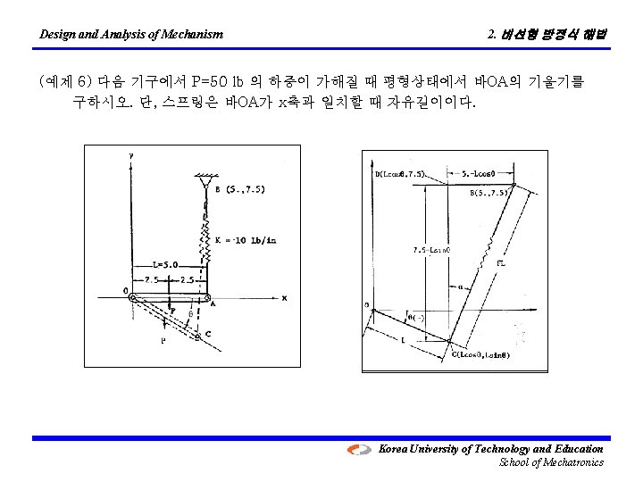 2. 비선형 방정식 해법 Design and Analysis of Mechanism 2. 비선형 방정식 해법 (Numerical Analysis of Nonlinear Equation) Korea University of Technology and Education School of Mechatronics