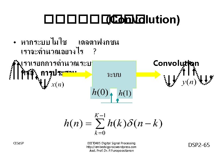 ������� (Convolution) ���������� CESd. SP EEET 0485 Digital Signal Processing http: //embedsigproc. wordpress. com Asst. Prof. Dr. P. Yuvapoositanon DSP 2 -54
