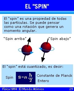 ESPÍN - LA IDEA DE QUE EL ELECTRÓN TIENE UN MOVIMIENTO DE ROTACIÓN FUE PROPUESTA EN 1925 POR RALPH KRONIG E, INDEPENDIENTEMENTE, POR GEORGE UHLENBECK Y SAMUEL GOUDSMIT. - DE ESTA MANERA SE PODÍAN EXPLICAR LAS CARACTERÍSTICAS DE CIERTOS ESPECTROS ATÓMICOS. - LA EXISTENCIA DEL ESPÍN DEL ELECTRÓN ESTÁ CONFIRMADA POR MUCHOS RESULTADOS NM 4