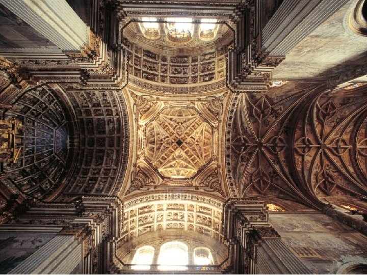 B ESPACIO VERTICAL / HORIZONTAL ESPACIO INTERIOR / BOVEDA La construcción de las bóvedas se reflejaron en templos religiosos, y en especial en una condición que surgió poderosamente: el espacio SIMBOLICO del espacio INTERIOR, en especial en relación al COSMOS a los poderes de los volúmenes en el espacio. Ejemplo de aquello es el DOMUS AUREA DE NERON que representa el movimiento de las estrellas. La concepción del espacio interior, el abovedamientos expresan dimensiones interpenetrantes de espacios. La intenciones modelar la iluminación interna, para configurar mejor el espacio arquitectónico.