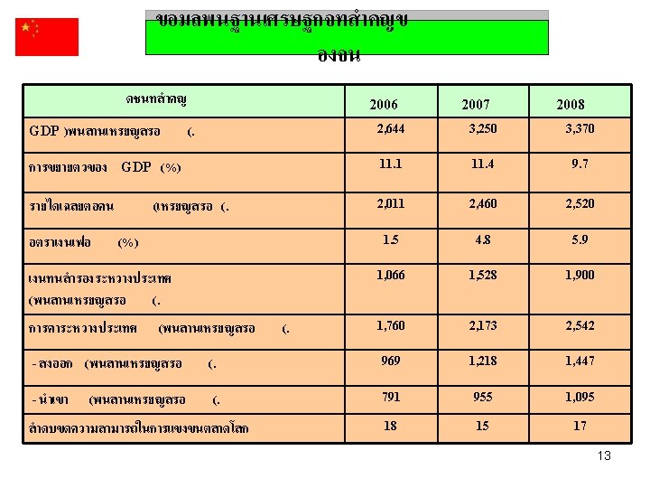 Inflation Rate country Jan Feb Mar Apr Thailand 4. 3 5. 4 5. 3 Malaysia 2. 3 Philippine 4. 9 Indonesia 7. 4 2. 7 5. 4 7. 4 Singapore 6. 6 6. 5 China India Vietnam USA May Jun Jul Aug Sep Oct 6. 2 7. 6 8. 9 9. 2 6. 4 6. 0 3. 9 2. 6 6. 4 8. 2 3. 0 8. 3 9. 0 3. 8 9. 6 10. 4 7. 7 11. 4 11. 0 8. 5 12. 2 11. 9 8. 5 12. 5 11. 9 8. 2 11. 9 12. 1 7. 6 11. 2 11. 8 6. 7 7. 5 6. 4 6. 7 6. 4 7. 1 8. 7 8. 3 8. 5 7. 7 3. 9 4. 6 6. 4 7. 4 8. 2 14. 1 15. 7 19. 4 21. 4 25. 2 4. 3 4. 0 3. 9 4. 2 7. 1 11. 5 26. 8 5. 0 6. 3 12. 0 27. 0 5. 6 4. 9 12. 4 28. 3 5. 4 4. 6 12. 0 27. 9 4. 0 11. 0 26. 7 3. 7 16