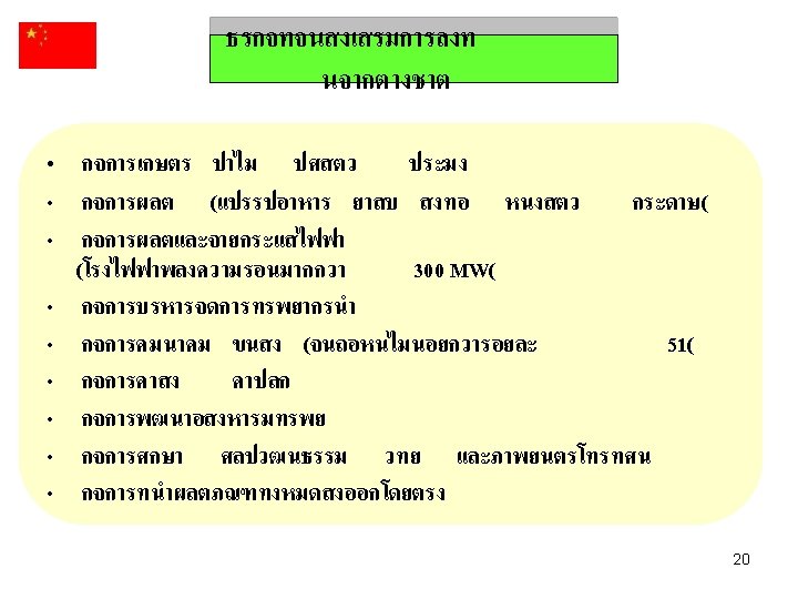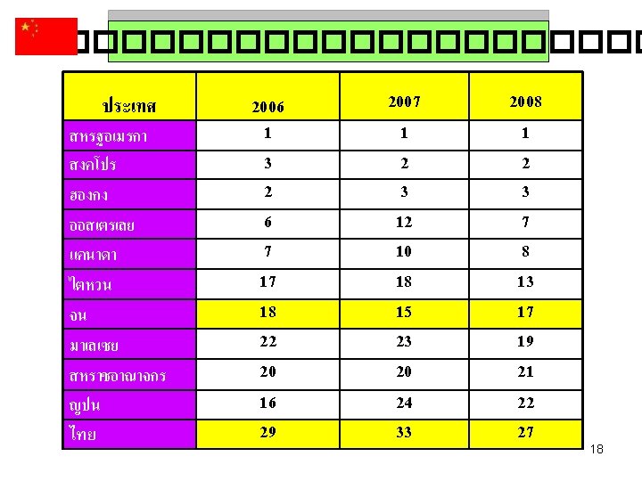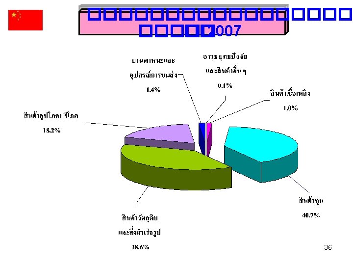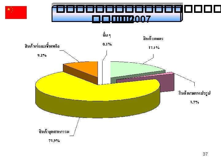 สดสวนการสงออกในตลาดโลก Germany Italy 6. 7% UK Begium 6. 0% 5. 9% Canada 5. 7% United States Japan China 16. 7% Netherlands 7. 5% France 7. 6% China Germany 18. 2% Japan 9. 8% United States 15. 9% France Netherlands Italy UK Begium Canada 17