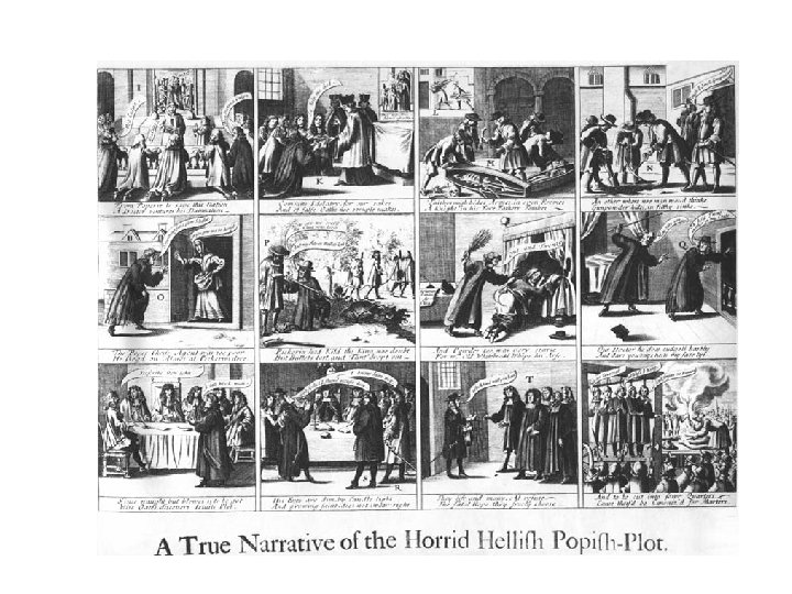 Un esempio di illustrazione narrativa e grafica del Popish Plot. Come la propaganda religiosa e politica modella la storia contemporanea in una forma semplificata, comprensibile e “avvincente”. L’interesse per l’attualità va di pari passo con la necessità di interpretarla secondo schemi potenti, immaginifici ed esemplari.