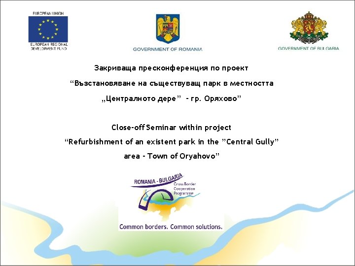 Благодаря за вашето внимание! Thank you for your attention! www. cbcromaniabulgaria. eu Investing in your future! Romania-Bulgaria Cross Border Cooperation Programme 2007 -2013 is co-financed by the European Union through the European Regional Development Fund