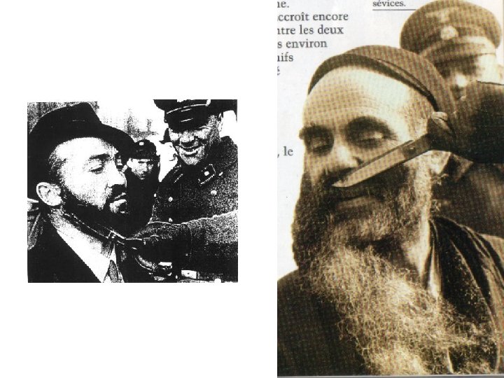 Soldats allemands coupant la barbe d'un vieillard juif en Pologne, 1939