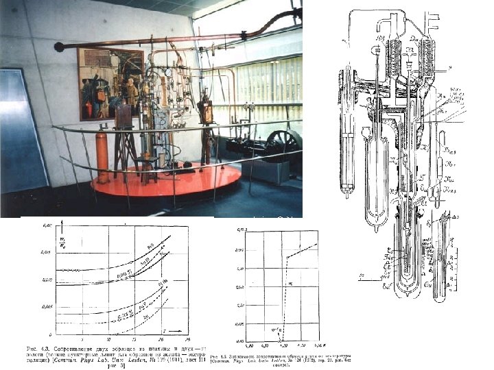 1911: discovery of superconductivity Discovered by Kamerlingh Onnes in 1911 during first low temperature measurements to liquefy helium Whilst measuring the resistivity of “pure” Hg he noticed that the electrical resistance dropped to zero at 4. 2 K In 1912 he found that the resistive state is restored in a magnetic field or at high transport currents 1913