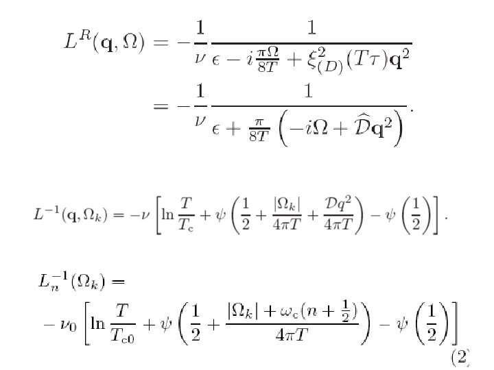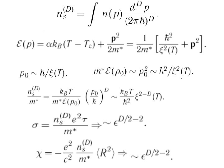 Diffusion coefficient renormalization When T-Tc<<Tc When T=0 Δσ(2)DOS= - 0. 1 e 2/ħ ln(1/ε)