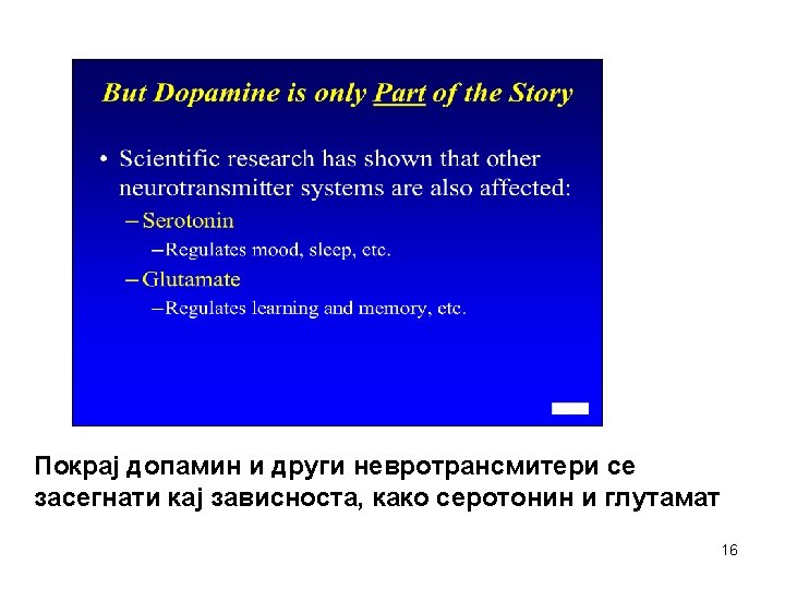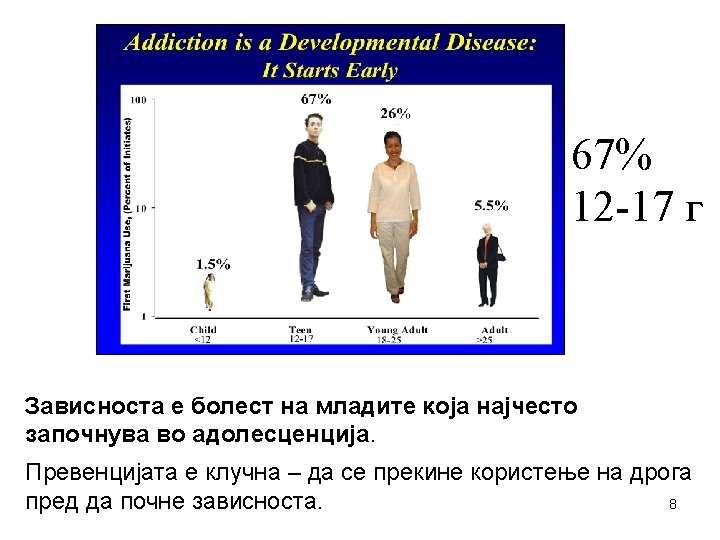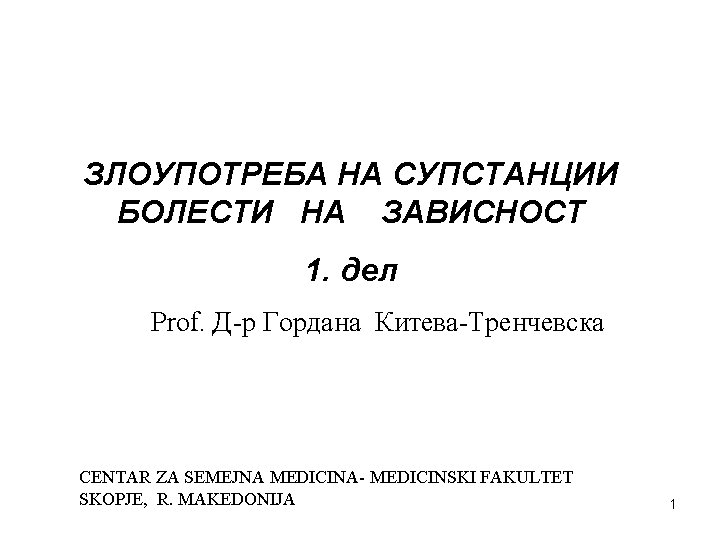 Zavisnostite predstavuvaat najte`ok javno zdravstven problem kaj mladite. Za{tita na javnoto zdravje ne e mo`no bez efikasen tretman na zavisnostite. No i pokraj toa zavisnostite se na marginite na medicinata no i na psihijatrijata. Kako da naviknavme “ deka taka mora da bide” 23