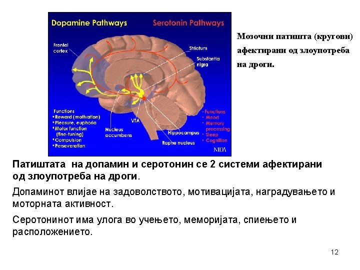 PFC – prefrontal cortex и ACG – anterior cingulate gyrus улога во инхибиторната контрола OFC – orbitofrontal cortex и SCC – subcallosal cortex улога во мотивацијата NAc – nucleus accumbens и VP – ventral pallidum улога во наградувањето Hipp – hippocampus; Amyg – amygdala – меморија/ учење 7