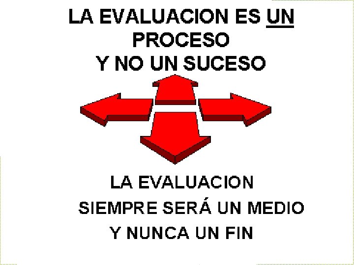 LA EVALUACIÓN Según Modelo conductista Qué evaluar Cómo evaluar Quién evalúa Cuándo evaluar Instrumento tradicional Resultados Al final del proceso El profesor La evaluación es un control permanente