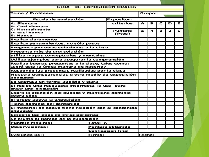 EXPOSICIONES ORALES Este instrumento puede ser una valiosa ayuda para valorar cualquier trabajo expresado a través de una exposición oral.