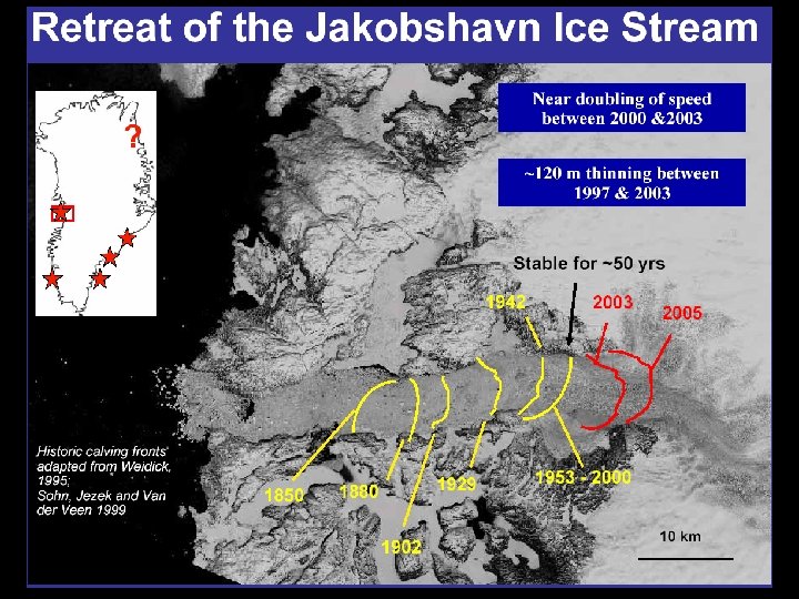 During the last interglacial, temperatures were warmer than pre-industrial (by 5ºC), and sea level was higher by 5 -6 m Cuffey and Marshall, 2000 Greenland + West Antarctic = 14 m
