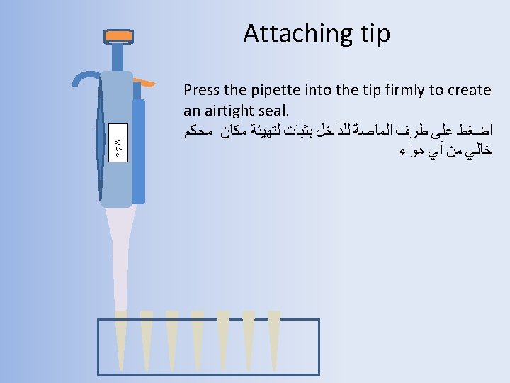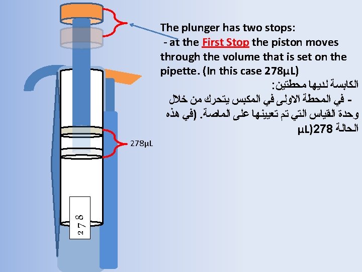 278 278μL -The second stop is extra travel used for certain circumstances like evacuating the tip, or drawing up more than the volume indicated on the pipette ﻭﺣﻴﻦ ﺗﻀﻐﻄﻴﻦ ﺣﺘﻰ ﺍﻟﻤﺤﻄﺔ ﺍﻟﺜﺎﻧﻴﺔ ﺗﺰﻳﺪ ﺍﻟﻜﻤﻴﺔ ﻋﻦ ﺍﻟﻜﻤﻴﺔ ﺍﻟﻤﻘﺎﺳﺔ – ﻭﺗﺴﺘﺨﺪﻡ ﻓﻲ ﺣﺎﻻﺕ ﻣﻌﻴﻨﺔ ﻓﻘﻂ 278 - Extra volume (? μL)