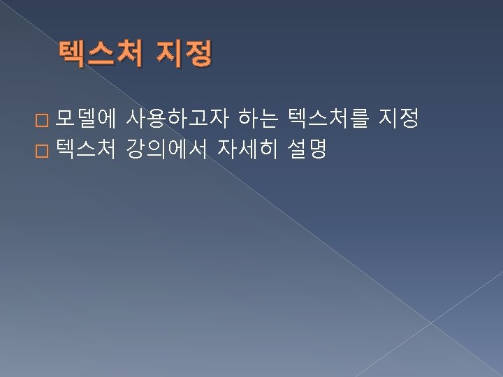 IDirect 3 DDevice: : Create. Texture() � HRESULT Create. Texture( UINT Width, UINT Height, UINT Levels, DWORD Usage, D 3 DFORMAT Format, D 3 DPOOL Pool, IDirect 3 DTexture 9** pp. Texture, HANDLE* p. Shared. Handle ); Width : 가로 길이 Height : 세로 길이 Levels : 밉 맵 텍스처 레벨, 기본 0 pp. Texture : 텍스처 버퍼의 메모리 포인터 � Width와 Height는 일반적으로 2의 승수를 사용! � �