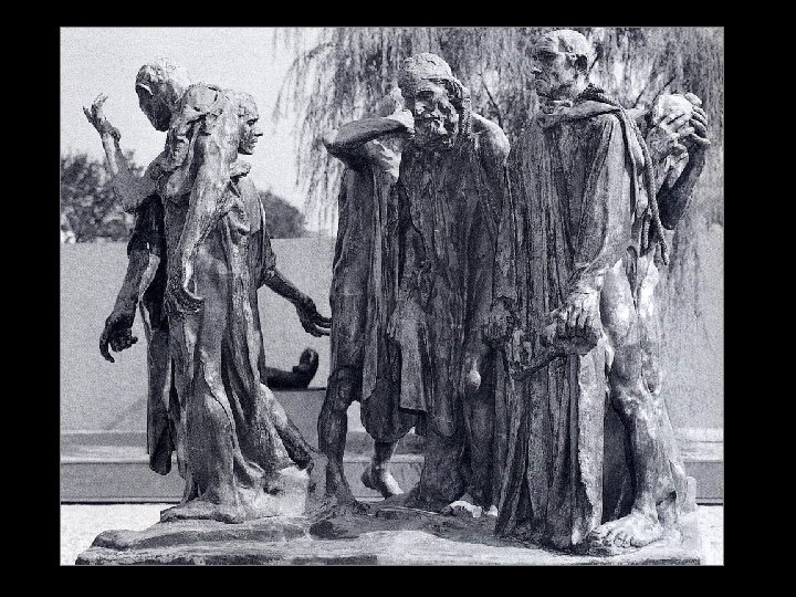 Essay Question 6: The city of Calais commissioned this sculpture to memorialize an event from the city’s past. Identify the sculptor. Discuss ways in which the sculptor’s conception, which was not acceptable to city officials, broke with traditional notions of heroic sculpture. (10 minutes)
