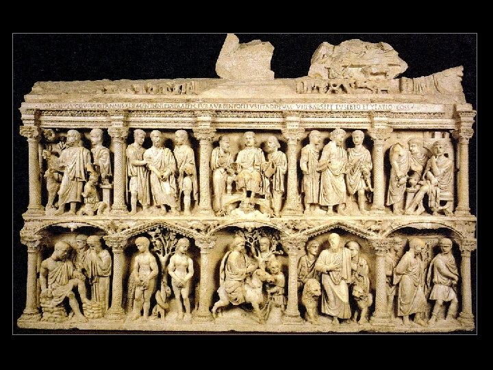 Essay Question 7: The work shown is the Sarcophagus of Junius Bassus. Which architectural and figural elements tie the work to the classical past? (5 minutes)