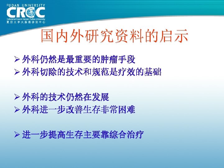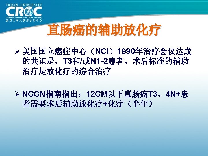 CAO/ARO/AIO 94(德国研究) 50. 4 Gy CI 5 -Fu Surg 5 -Fu x 4 Surg 50. 4 Gy CI 5 -Fu x 4 T 3 NEJM,351: 1731 -1740,2004