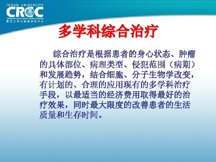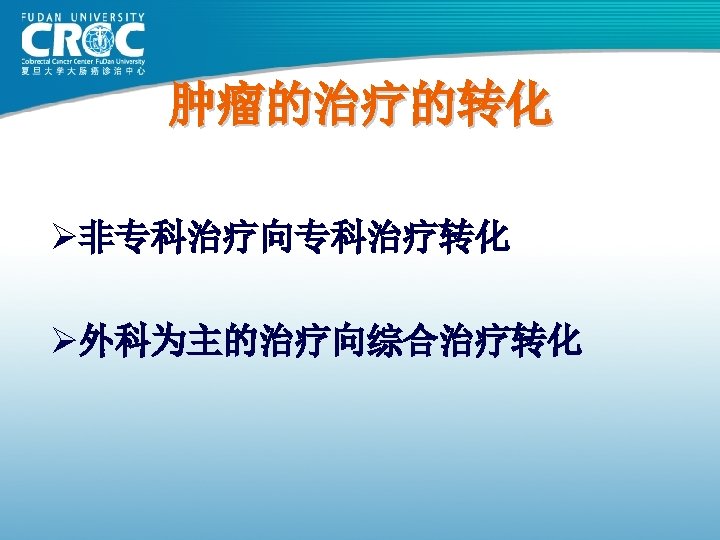 2007 恶性肿瘤治愈方式 Ø 60% are cured by surgery alone Ø 10% are cured by radiotherapy alone Ø 4% are cured by chemotherapy alone Ø 26% are cured by the combination of surgery, radiotherapy and/or chemotherapy