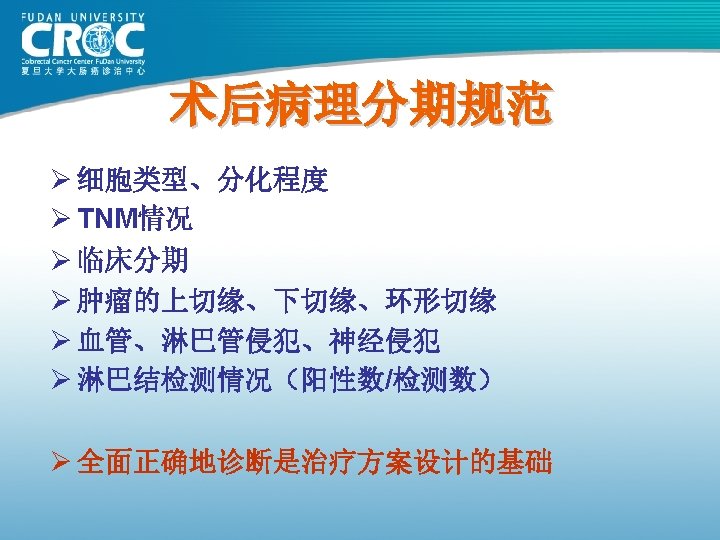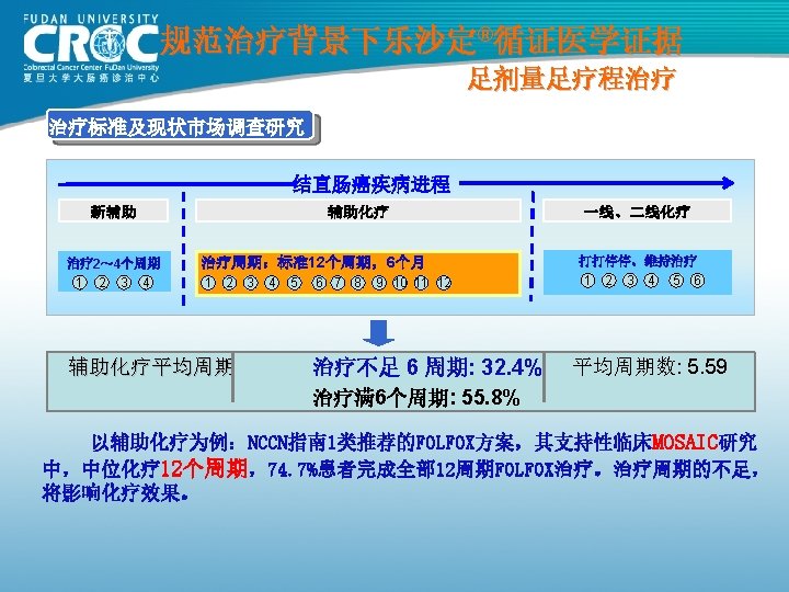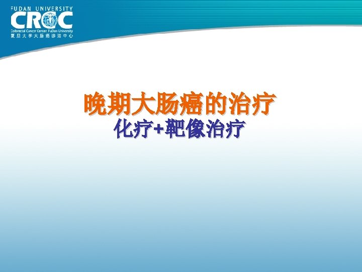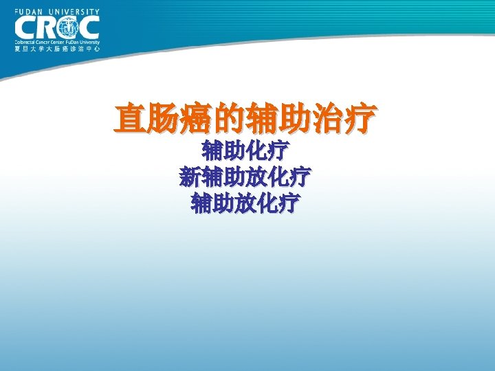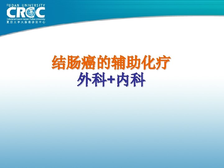 辅助治疗的生存优势: 20, 898 例病患的证据 Stage II 8 -year OS Stage III 8 -year OS 1. 0 ∆=5. 4% p=0. 026 0. 8 0. 6 0. 4 Surgery alone: 66. 8% 0. 2 0 1 2 3 4 5 Surgery alone: 42. 7% 0. 2 Surgery + FU-based chemotherapy: 72. 2% 0. 0 ∆=10. 3% p<0. 0001 Surgery + FU-based chemotherapy: 53. 0% 0. 0 6 7 8 0 1 2 3 4 5 6 7 8 Follow-up (years) Sargent et al. JCO 2009