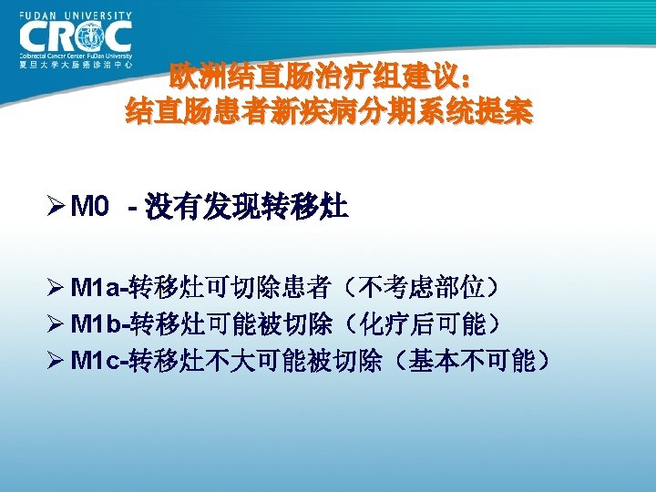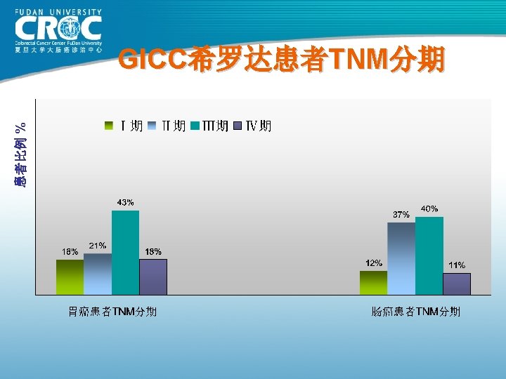 美国和西欧大肠癌发病分期 2003 (n≈300, 000) Stage I 24% Stage IV 22% Stage II 26% Stage III 29%