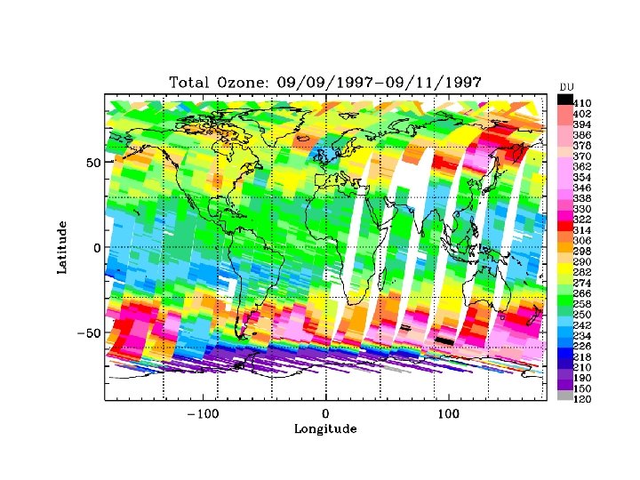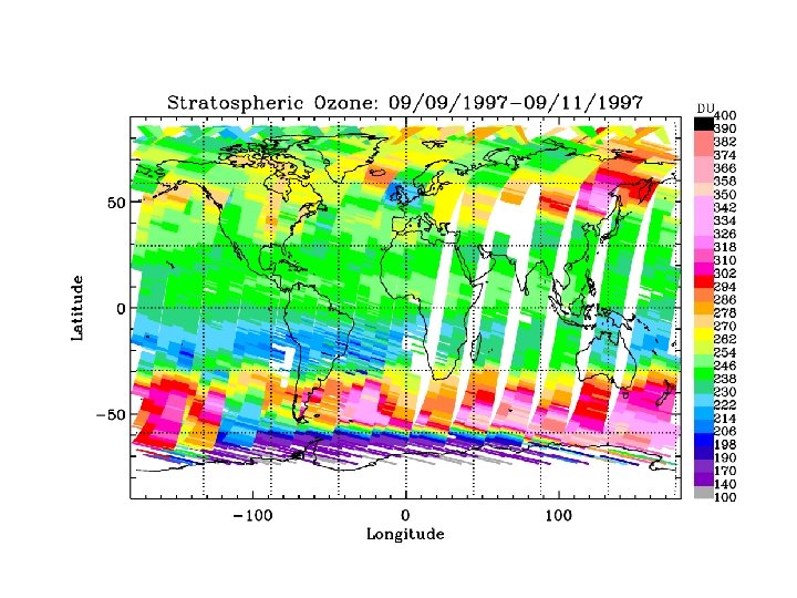 Validation: Hilo (19. 5 N, 155 W), 1996 -2000 Total O 3 and tropospheric O 3 agree well with Dobson/TOMS and ozonesonde n v v GOME-TOMS: -1. 3± 4. 9 DU GOME-Dobson: 9. 3± 5. 6 DU GOME-Ozonesonde Trop. : -0. 3 ± 6. 6 DU GOME-Ozonesonde Strat. : 5. 9 ± 5. 9 DU Large bias in stratospheric O 3 especially after 1998. n