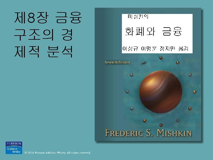 응용: 금융 발전과 경제 발전 금융 억압은 저성장의 원인 된다. (Financial Repression Leads to Low Growth) : 그 원인은 무엇인가? 1. Poor legal system 취약한 법적 구조 2. Weak accounting standards 취약한 회계 기준 3. Government directs credit 정부의 신용통제 4. Financial institutions nationalized 금융 기관의 국유화 5. Inadequate government regulation 부적절한 정부 규제 © 2004 Pearson Addison-Wesley. All rights reserved 8 -16