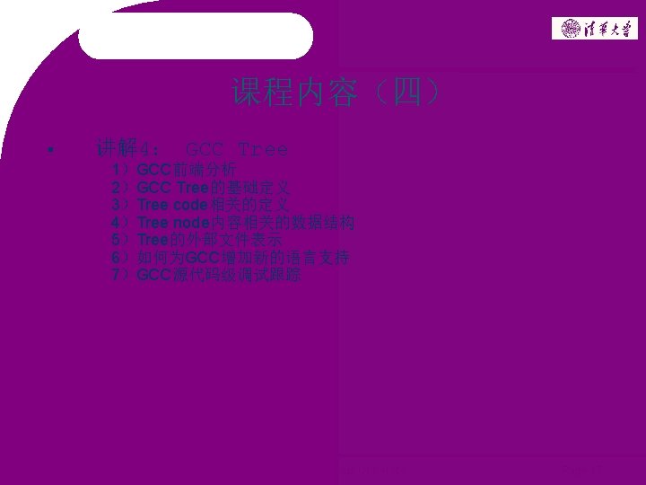 课程内容(五) 讲解 5: GCC中间表示RTL 1)RTL综述 2)RTL的内部数据结构表示 3)RTL的外部线性文本表示 2006 ~ 2008 Copyright @ Tsinghua University Page 18
