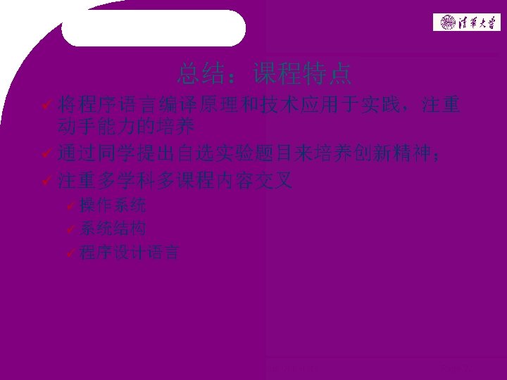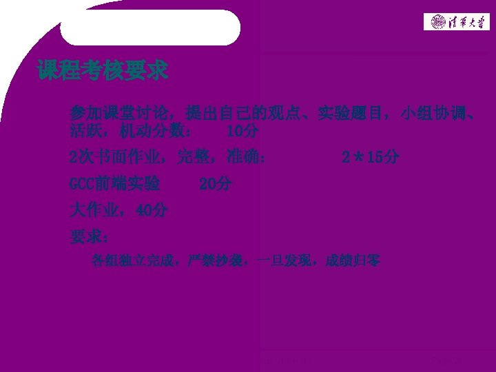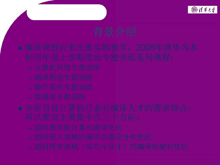 编译原理专题训练 介绍 2006 ~ 2008 Copyright @ Tsinghua University Page 1