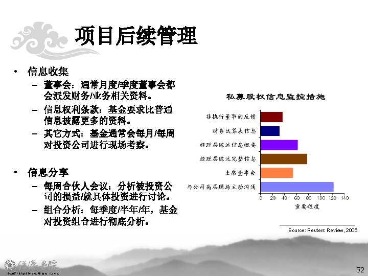 项目监控 “I make an investment in China every year just to learn a new way of losing money. ” —— GP of a fund focusing on Asia © 2007 Peking University, All rights reserved. 51