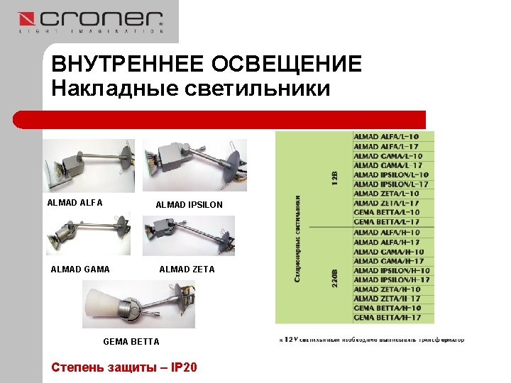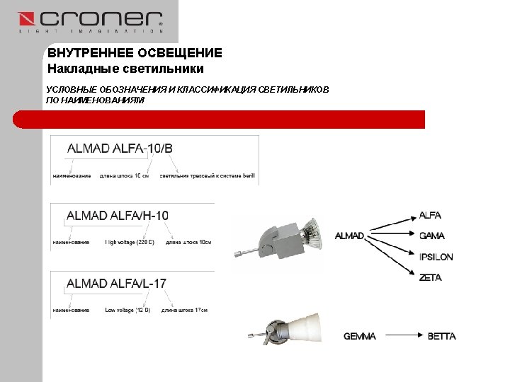 ВНУТРЕННЕЕ ОСВЕЩЕНИЕ Трековая система BERILL TRACK Система BERILL ROD ALMAD ALFA ALMAD GAMMA ALMAD IPSILON BERILL POWER ALMAD ZETA BERILL CONNECT GEMMA BETTA