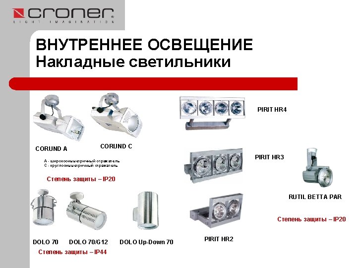 ВНУТРЕННЕЕ ОСВЕЩЕНИЕ Трековая система GRANAT TRACK GRANAT CONNECT L GRANAT CAP GRANAT ROD Система GRANAT CONNECT I RUTIL BETTA PAR CORUND A/G CORUND C/G