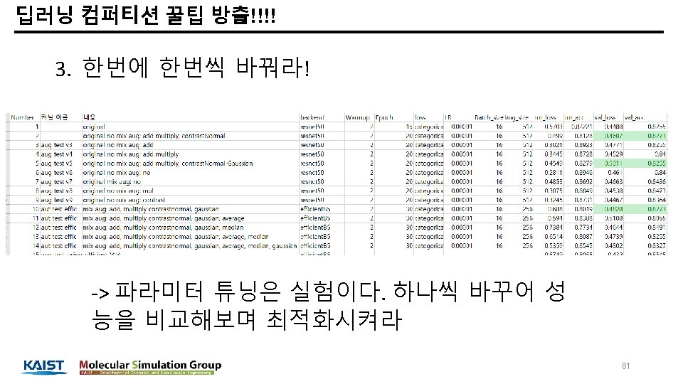 딥러닝 컴퍼티션 꿀팁 방출!!!! 1. Data augmentation 을 잘해라 1. 좋은 augmentation 을 찾아야 한다. - https: //github. com/aleju/imgaug keras 내장 Pytorch 내장 Imgaug Albumentation 등 79