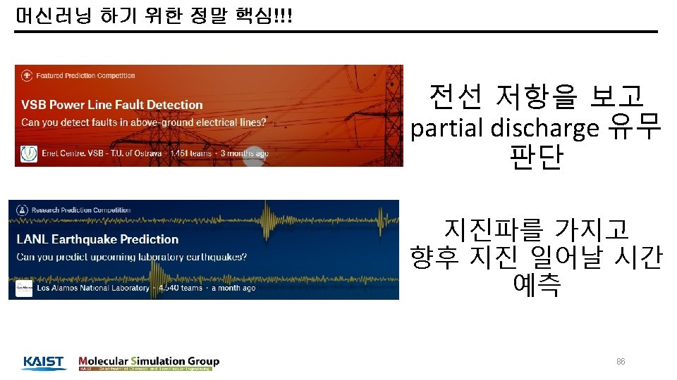머신러닝 하기 위한 정말 핵심!!! VSB competition LANL competition - 데이터 타입은 같음 - time series, numerical value 87
