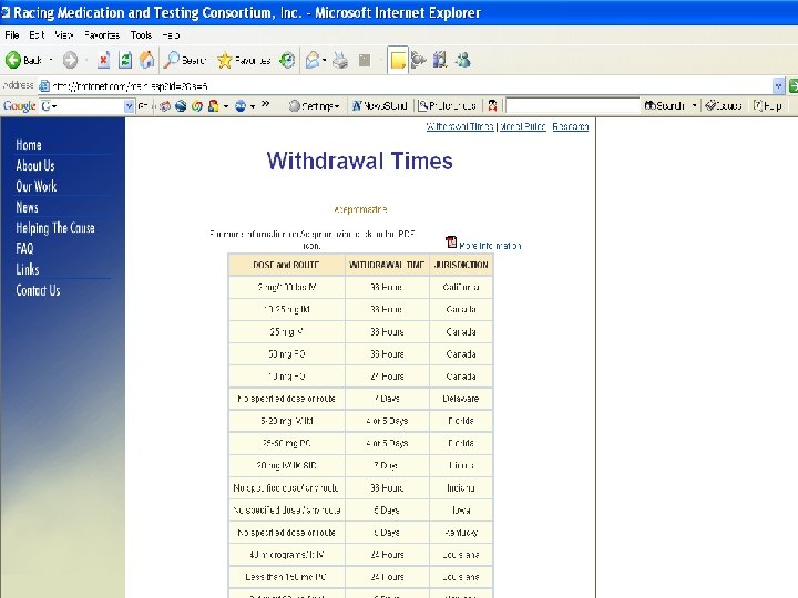 Withdrawal Times Database n www. rmtcnet. com