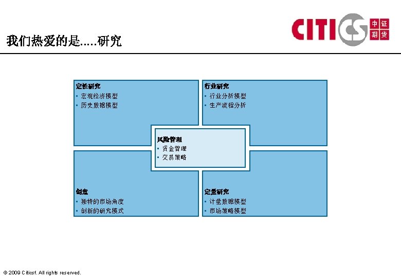 2009 Citicsf All rights reserved 2009 Citicsf All Slides: 10 Download presentation 我们告诉你的不仅仅是…… © 2009 Citicsf. All rights reserved. 我们告诉你的是…… © 2009 Citicsf. All rights reserved. 我们告诉你的不仅仅是…… 风险 市场 © 2009 Citicsf. All rights reserved. 我们告诉你的是…… 风险 市场 管理 © 2009 Citicsf. All rights reserved. 我们关心的是. . . 人 © 2009 Citicsf. All rights reserved. 农产品小组 © 2009 Citicsf. All rights reserved.